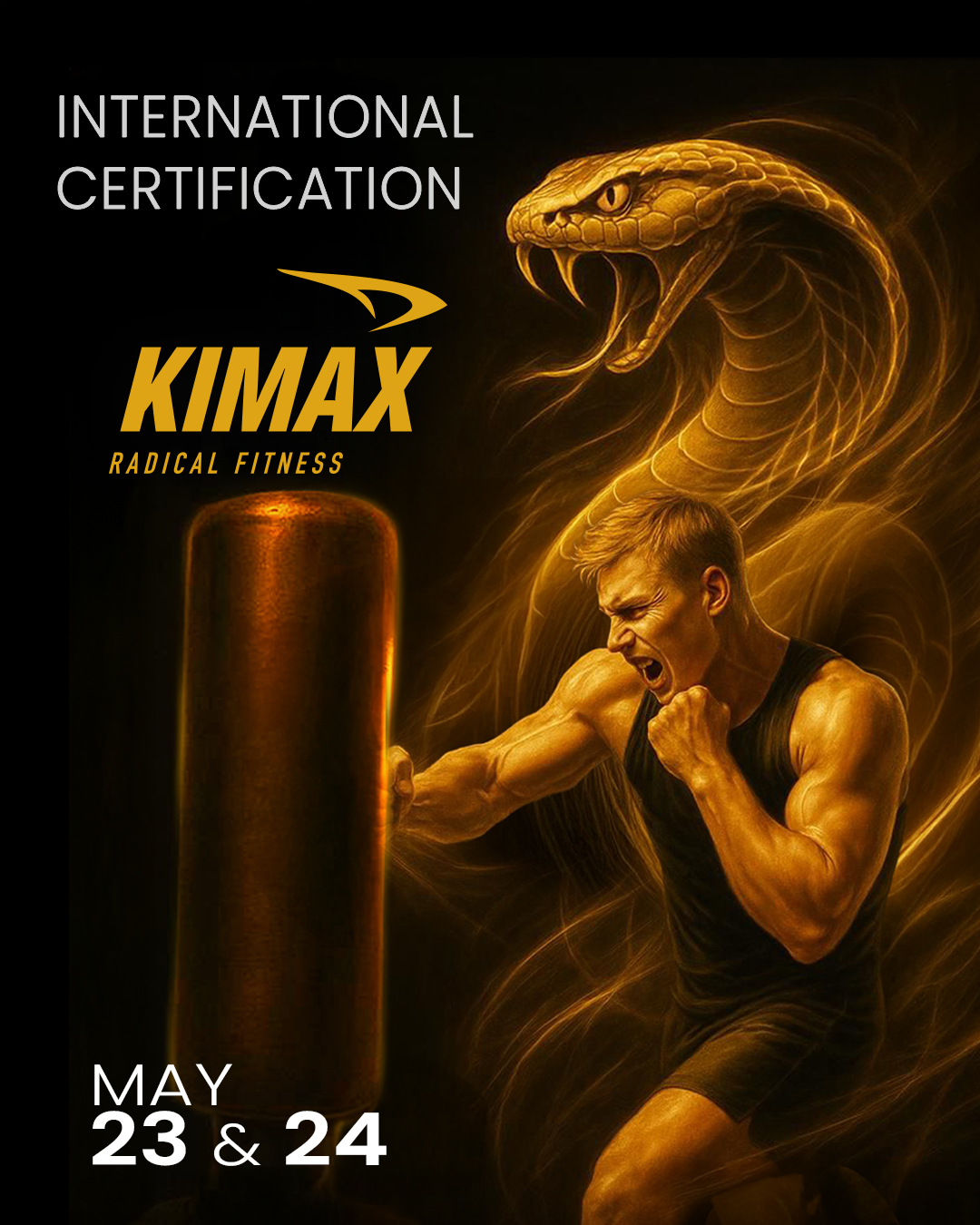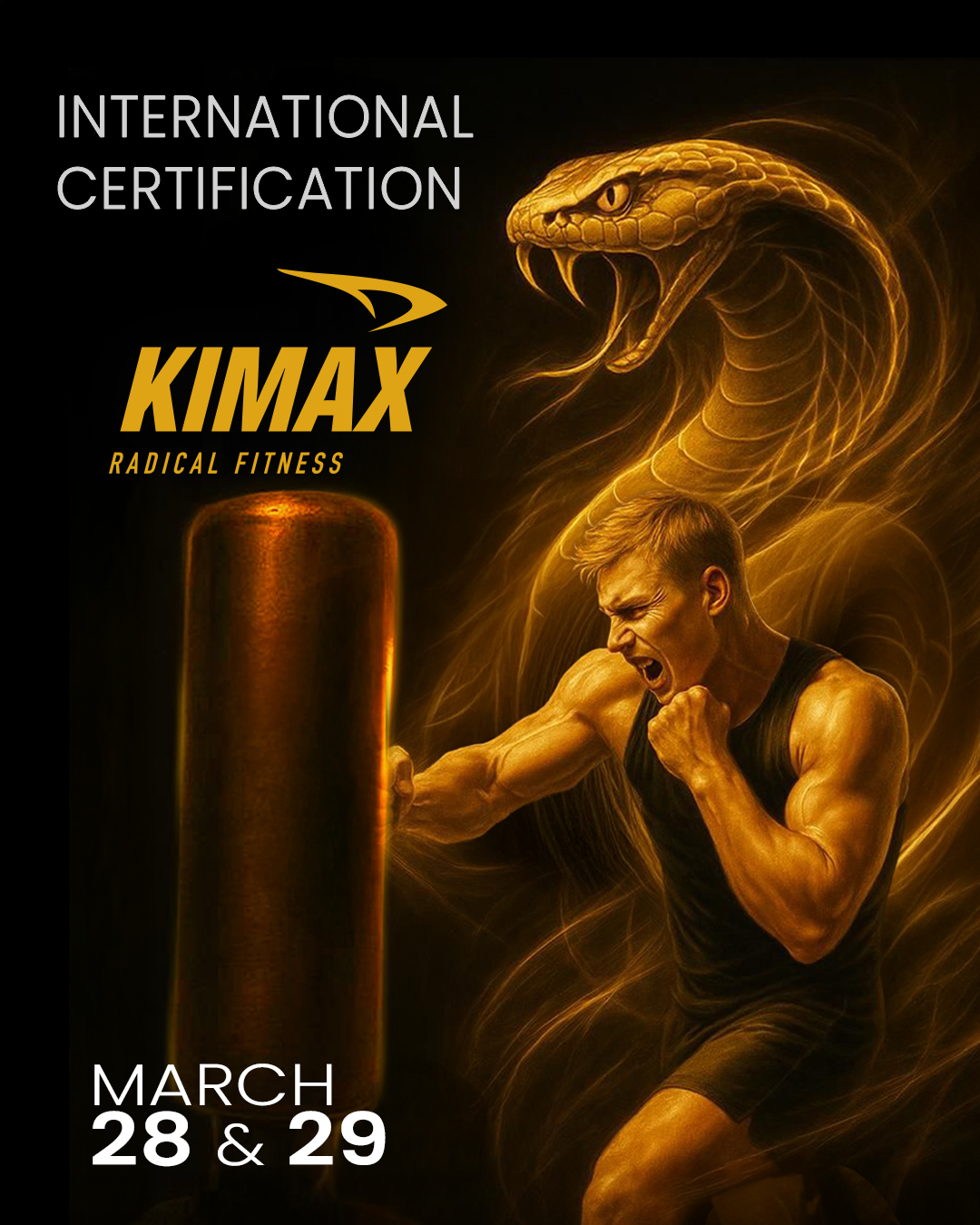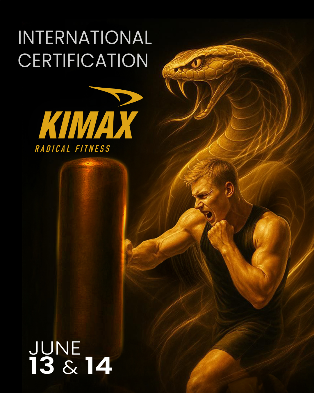 KIMAX® is performed with a free-standing kicking boxing bag, designed exclusively for this class, using boxing gloves.